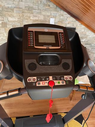 Cinta de correr profesional seminueva, con programas preestablecidos y posibilidad de personalizar, controles de velocidad e inclinación en reposabrazos, de base estable y con posibilidad de recoger fácilmente (como se ve en imágenes), maquina silenciosa con pantalla grande y monitoreo cardiaco en empuñaduras y cinta para el pecho (nueva), ventilador de enfriamiento, motor potente.... Está prácticamente sin uso y siempre utilizada para caminar. Muy bien cuidada y mantenimiento al día. No envío ni se incluye montaje/desmontaje para su traslado