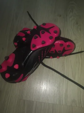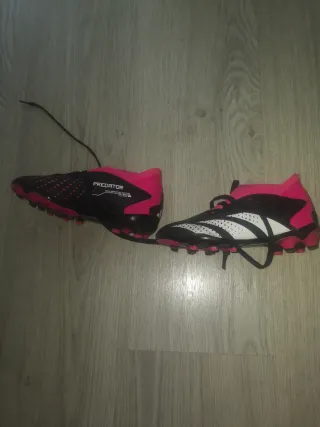 Botas de fútbol marca Predator para niñ@. - Color negro y rosa. - Diseño deportivo. - Talla 29.