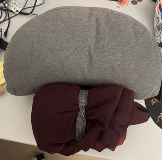 Cojín y manta de yoga gris y burdeos