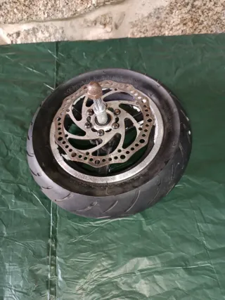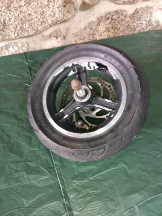 Rueda delantera para patinete. - Llanta de aluminio. - Neumático con un 80% de utilidad - Disco de freno incluido.