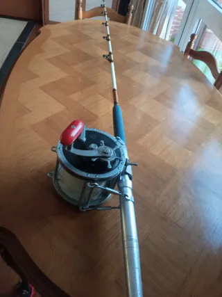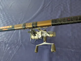 Caña de pescar vintage con gran potencia. Acción 300 reconstruida. Es un cañón potente