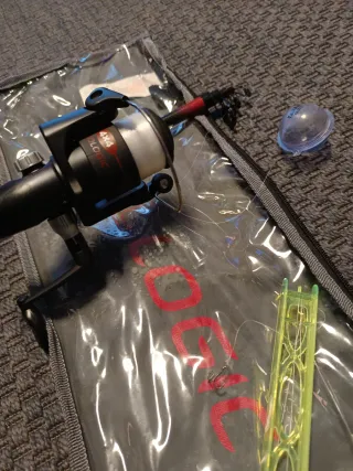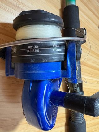 Conjunto de caña de pescar y carrete el carrete se tendría q desmontar para engrasar y limpiar por eso la vendo a ese precio... - Caña de pescar Decathlon. - Modelo Hudson. - Incluye carrete con hilo naranja.