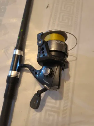 Conjunto de pesca que incluye una caña(SIN ESTRENAR)y tres carretes. - Caña de pesca 3.50m acción 60g-120g ideal para iniciarse en la modalidad de pesca a fondo/surfcasting - Tres carretes tamaño 6000 aprox con hilo monofilamento nuevo -Tres plomos de regalo Recogida en persona
