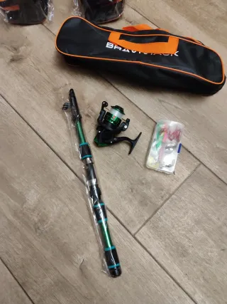 ℹ️Caña de pescar "universal" de fibra telescópica. 📏Pesca en el mar y pesca desde embarcación. 2,7 m de largo, peso de lanzamiento 20-40 g. ❗También viene con un tubo de almacenamiento de plástico, que no tiene un aspecto estético muy bonito, ¡pero cumple su función! 9/1