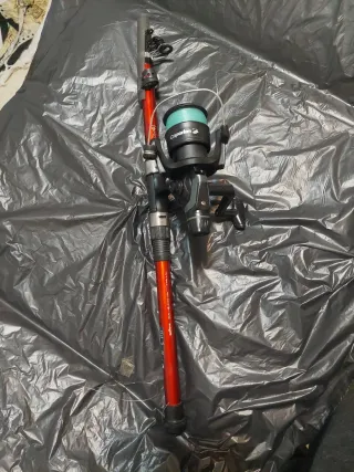 ℹ️Caña: Enticer Plus spinner 2m. 📏Mide 244 cm de largo ❌es una caña fija, por lo que no se hace más pequeño para el transporte. ℹ️Carrete: Xlint 5 Prologic 8 rodamientos 📦*No puedo enviar por la longitud de la caña* 9/1