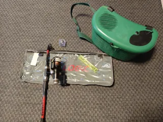 Kit completo para iniciarse en la pesca. Incluye caña, carrete y accesorios. - Caña de pescar telescópica. - Carrete de pesca. - Bolsa de transporte. - Flotador. - Señuelos. Y añadimos una cesta verde para la pesca