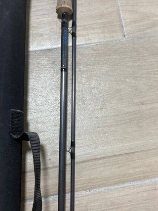 Caña de pesca a mosca utilizada 2 veces prácticamente nueva de la marca Leader fly Comprada en una tienda de Gipuzkoa dedicada a pesca de trucha y spinning - Es de 9 pies 2,76m - Acción 5/6 media - 9 anillas (guías) una de ellas cerámica . - 4 elementos -Recojida 72,5 cm -Mango de corcho sin desgaste alguno -Lleva una funda
