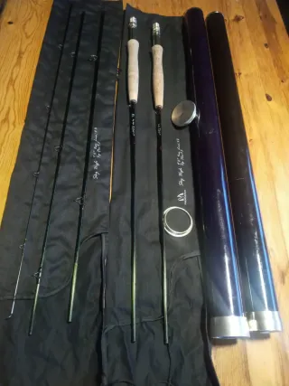 Se vende caña de pesca a mosca Maxcatch modelo Skyhigh de 9 pies para línea 4. Con tramo de empuñadura extra que la hace de 8'6 pies. Incluye dos tubos protectores y una fundas. Apenas se ha usado, es liviana y de acción muy suave, apta para seca, ninfa y pequeños streamers. - Caña de pesca a mosca. - Longitud: 9 pies. - Para línea: 4. - Incluye dos tubos de transporte. - Incluye funda de tela.
