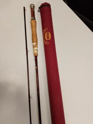 Caña de mosca Penn IMS 6590 GRAPHITE 9 line 5 con funda a estrenar con etiqueta en la empuñadura - Caña de pesca. - Funda de tela color burdeos.