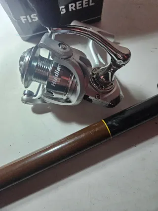 Conjunto de pesca a mosca que incluye caña y carrete. - Carrete de pesca a mosca. - Caña de pescar. Entrega en mano