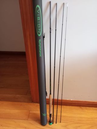 Caña de mosca Vision Hero Nymph para pesca a ninfa. Totalmente nueva, conservando incluso el plástico de la empuñadura. La vendo porque he comprado otra de gama superior. - Longitud: 10 pies. - Línea: #4. - Incluye tubo de transporte de cordura.
