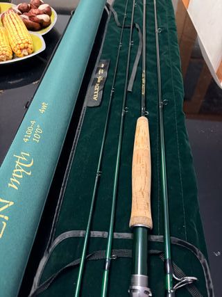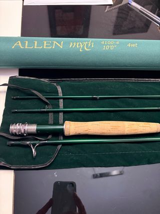 Caña de pesca a mosca ALLEN myth 4100-4. - Caña en 10 ́ linea 4wt - Perfecta para la pesca de trucha a mosca seca como a ninfa - Diseño en color verde. - Tubo de transporte en cordura