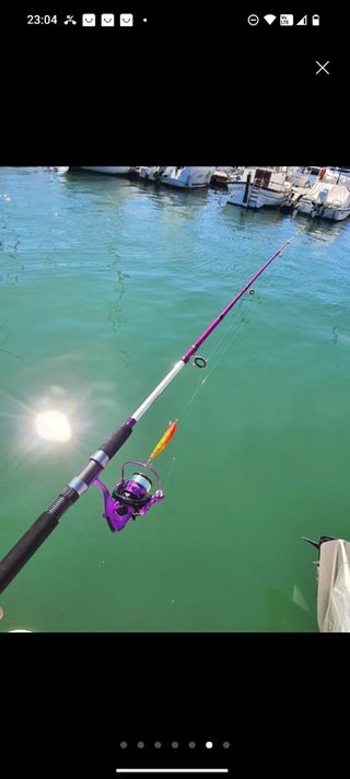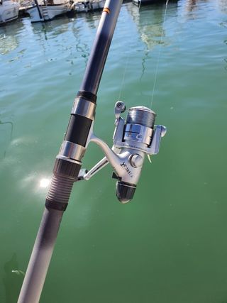 Se vende equipo de pesca listo para usar preparado por nuestro equipo de especialistas en pesca indicado para la pesca con BOMBETA, SPINNING Y FONDEO. Compuesto por : Caña VEGA ADVANTAGE de 3,50 metros, acción hasta 120 gramos, Carbono...caña fuerte y sensible a la vez + carrete VEGA ELITE 4000 con 5 rodamientos, freno inferior y bobina de aluminio + hilo puesto OCAÑA GOLDEN FISH + montage de Bombeta con ANGUILON puesto. ¡¡ PRECIO OUTLET TODO x 65 € !!