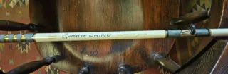 Caña de pesca White Rhino, modelo ideal para curricán. Mide 1,8 metros de largo. - Diseño en color blanco con detalles dorados y grises. - Anillas de pesca incorporadas.