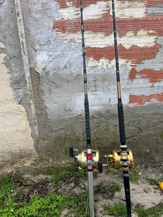 Conjunto de dos cañas de pesca para curricán los dos equipo 130 caña y carrete 900 cada uno 1800 los dos los hilo nuebo sin estrenar