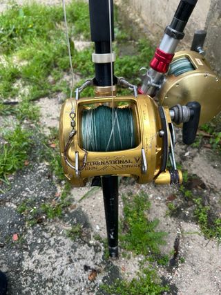 Equipo de pesca para curricán y brumeo. - Caña Invictus 50/130. - Carrete de pesca Shimano Tiagra 50 LRS W todo perfecto estado recién revisado en servicio oficial cargado de hilo momoi 80 lb caña perfecto estado
