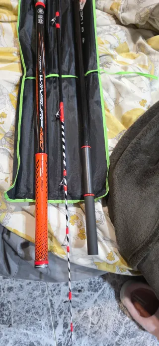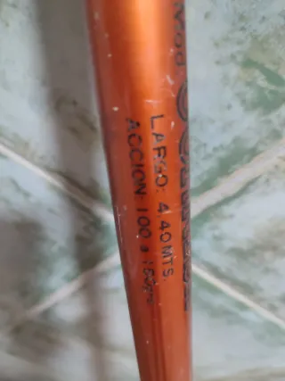 Caña de pescar Kali Kunnan modelo Winsurf 420. Ideal para la pesca. Punta híbrida con dos bobinas una de teflón y otra de aluminio las dos con su correspondiente hilo y cola de rata ya puestos lista para pescar! Comprada el 1 de noviembre del 2025 no se ha usado ni 1 vez - Color naranja y negro. - Mango con agarre texturizado. - Incluye funda protectora.