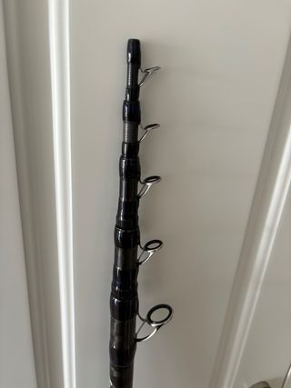 Caña de pescar diseñada para embarcación fondeada. Su diseño telescópico la hace fácil de transportar y almacenar. lleva un puntero híbrido. - Material: Fibra de carbono. - Longitud: 4.30 metros. - peso: 264 grs la caña ha sido usada una sola vez para probarla. el puntero está sin estrenar. La vendo por exceso de cañas.