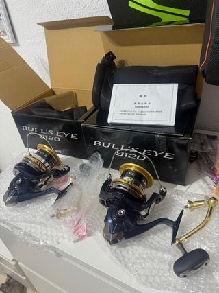 -Se venden dos carretes de pesca Shimano Bull's Eye 9120. -Incluyen sus cajas originales, fundas sin usar originales para guardarlos, manuales, cubrebobinas y pegatinas de diámetro de hilo. -Están muy cuidados, lo vendo por exceso de material. -Sin bobinas los dejo en 400 Daiwa cinnetic yuki Kali kunan vega akami caña cañas carrete ultegra xsb xsc xsd xse power aero fliegen mgs bull pesca pescar surfcasting spinning socorro saragosa stradic twin stella mar