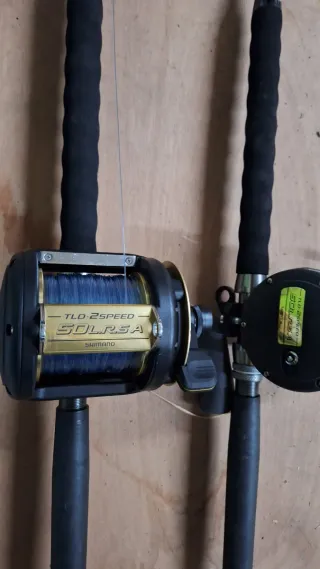 Dos Carretes de pesca Shimano TLD con capacidad para 50 libras y dos velocidades. Dos Conjuntos con cañas nuevas,Modelo Isla morada 1,7m Hilo de 1,2 mm metido nuevo, precio 150 euros la bobina de 500m. Precio 400 euros unidad, conjunto 750. - Modelo: TLD 2 Speed - Marca: Shimano - Capacidad: 50 lbs - Cañas 30-50lbs Isla Morada 1,7m - Precio nuevo mas de 600 euros. - No me corre prisa asi que abstenerse ofertas ridículas.