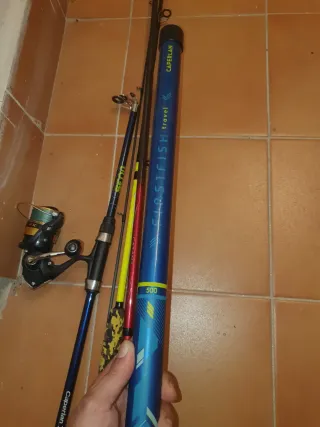 Conjunto de caña de pescar con carrete. Como nuevo 4 salidas
