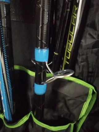 Se venden dos cañas de pescar de la marca Zziplex todo un cañon - Dos fundas incluidas. - Marca: Zziplex. - Color: Negro. - Cierres de velcro.
