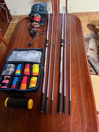 INCREÍBLE OCASIÓN!!✅✅ -Pareja de cañas RED GATE 420 , acción 100-250❗️CON SUS DOS FUNDAS ❗️ -Pareja de carretes AKAMI ORIÓN , como nuevos tres salidas y siempre endulzados igual que las cañas ❗️ -Funda SHIMANO para guardar los dos carretes como nueva❗️ -Porta aparejos SUNSET, en estado perfecto con con unos 40 montadores❗️ -Tres bobinas para cada carrete todas con hilo ❗️ -Anzuelos licra etc ❗️ ‼️SOLO HASTA 24 DE DICIEMBRE‼️ NO CONTESTO TONTERÍAS ❗️ESCUCHO OFERTAS RAZONABLES❗️