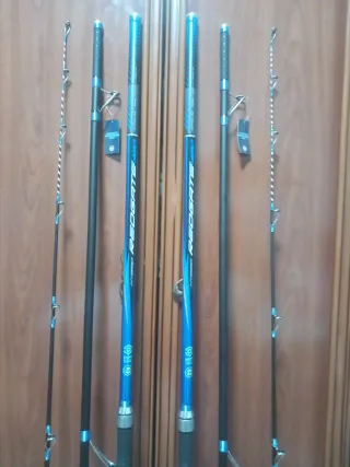Se vende equipo de pesca par surfcasting. - Dos cañas de pescar daiwa land surf 33-4,25 componentes fuji y puntera hibrida - Dos carretes de pesca shimano ultegra xsa 6000 como nuevos