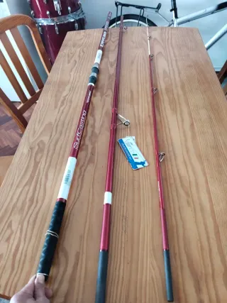 Caña de pesca Vercelli Sentinel-T. - Longitud: 4.50 metros. - Potencia: 100-300 gramos. Está prácticamente nueva, con alguna mariquita del uso pero nada especial. Siempre endulzada después de cada jornada. Tiene 5 salidas. Algo negociable