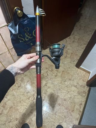 Se vende caña de pesca con carrete. - Caña de pesca. - Carrete de pesca.