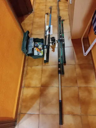 Vendo equipo de pesca completo, ideal para principiantes o aficionados. Está en buen estado y listo para usar. - Incluye varias cañas de pescar de diferentes tamaños y materiales. - Se incluyen también varios carretes de pesca Penn Reels. - Se entrega con un par de botas de agua y un traje de neopreno.