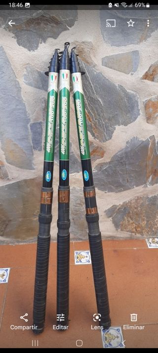 Se vende kit completo de pesca con dos cañas, dos carretes y trípodes. -Dos fundas de cañas - Dos cañas de pescar. - Dos carretes de pesca. - Trípodes para las cañas.