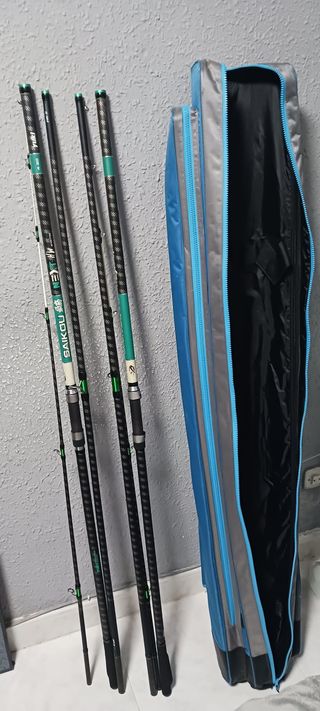 Pareja de cañas del decathlon con 3 carretes del decathlon más picas i funda