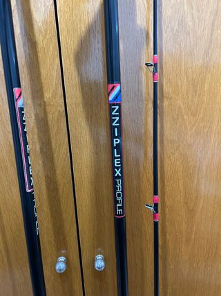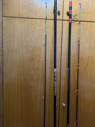 Conjunto de cañas de pescar de la marca zziplex profile. - Modelo: PROFILE - Color: Negro con detalles en rojo y azul. Me las quito de encima porque dejo el surf casting y quiero probar otra modalidad, tienen diferentes anillas porque una la usaba para practicar en casting y estaba anillada para lanzar y la otra la tengo para ir a pescar por eso tiene diferentes anilla. No bajo precio quien sabe de estas cañas sabe que son para toda la vida.