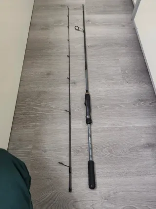 Caña de pescar para spinning, ideal para la pesca deportiva. - Diseño en dos piezas para facilitar el transporte. - Empuñadura ergonómica para un agarre cómodo. - Anillas resistentes para el hilo de pesca.