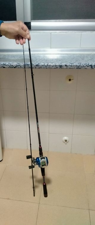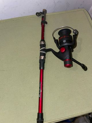 se vende caña boomerang acción 10 a 20g de 2,10 y 53 plegada carrete herculy 197 -B. pesca, carpfishing, blases