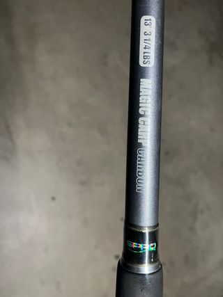 Se vende caña de pescar para carpfishing, ideal para largas jornadas de pesca. - Caña telescópica. - Mango con agarre de tela. - Carrete de pesca incluido.