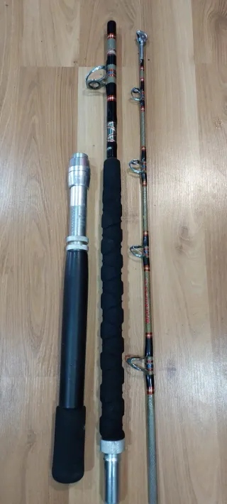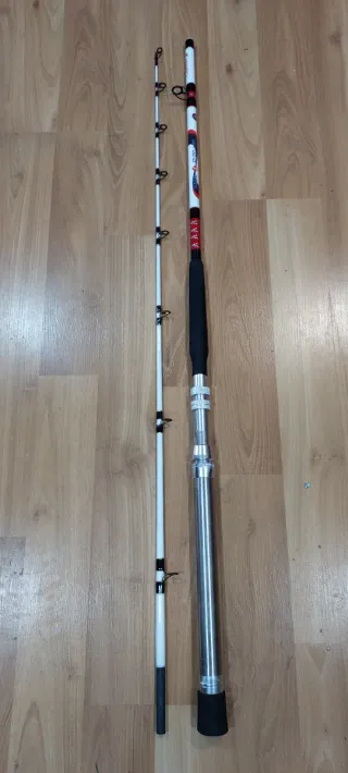 Caña de curricán en excelente estado, con muy poco uso. Ideal para pesca en alta mar. - Puntera de rodillo para facilitar el manejo de la línea.
