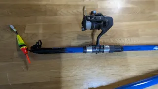 Caña de pescar con carrete y flotador