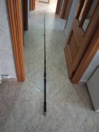 Caña de pescar diseñada para la pesca de carpas. Es un artículo de segunda mano. - Caña de pescar de color negro. - Mango con agarre. - Anillas para la línea. - No negociable - Medida 3,30