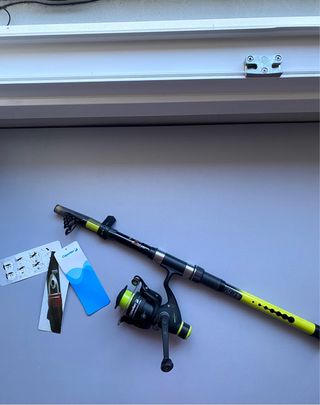 Caña de pescar cormorán black star Cs de carbono mide 3.90 solo sea usado 1 día está perfecta también cambiaría por caña ligera de spinnnig de 210 de largo