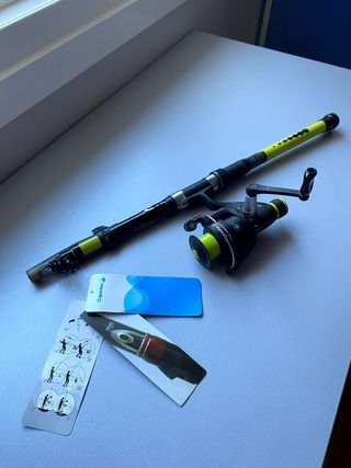 Se vende caña de pescar Caperlan completamente nueva, nunca utilizada, en estado impecable. Conserva las etiquetas originales, tal y como se aprecia en las fotos. Es telescópica con 5 tramos y extensible hasta los casi 3m.