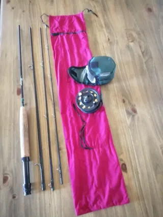 Conjunto completo para la pesca con mosca, incluye caña, carrete y kit de fabricación de moscas. - Caña de pesca. - Carrete de pesca. - Kit para fabricar moscas.
