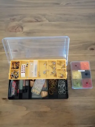 Conjunto variado de artículos para caña de pescar. Totalmente NUEVO, sin ESTRENAR. - Señuelos de diferentes colores y formas. - Anzuelos, floppers, cebos de goma y pequeños accesorios. - Caja organizadora. Dispongo de varias unidades. #niño #niños #cazadora #abrigo #chaqueta #montaña #senderismo #camiseta #pantalon #zapatillas #nuevo #hombre #mujer #movil #abrigo