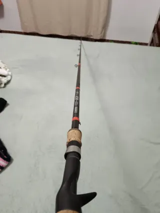 Caña de pescar en perfecto estado funciona todo correcto diseñada para embarcaciones. - Color negro con detalles dorados. - Múltiples anillas. - Mango ergonómico.