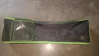 Bolsa de transporte de gran tamaño, ideal para viajes o mudanzas. Cuenta con ruedas para facilitar su desplazamiento. - Color negro con detalles en verde. - Material resistente. - Cierre de cremallera.Poco uso,se puede ver sin problemas,alto 144cm, ancho frente 40cm, lado 25cm. Ideal para transportar porta documentos,golf,cañas de pesca,viajes tiene muchas utilidades y se transporta fácil al tener ruedas. Con bolsillo frontal transparente.