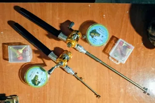 Se vende lote de dos cañas de pescar tipo bolígrafo. - Diseño compacto y portátil. - Ideales para llevar a cualquier parte.