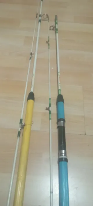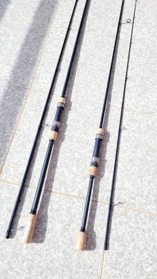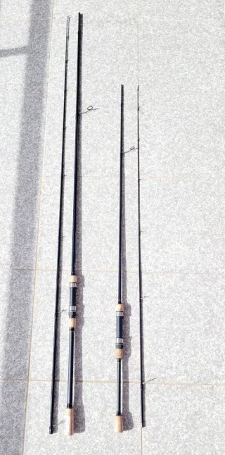 Dos cañas de pesca de color negro. - Empuñadura negra. - Anillas metálicas. Varias cañas nuevas y usadas en buen estado información x privado