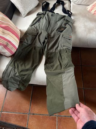 Pantalones de pesca de alta calidad con tirantes ajustables. Diseñados para ofrecer comodidad y durabilidad. también tengo chalecos de pesca.  Tengo caña en su funda,Carretes nuevos en su caja, guantes, tijeras y caja para llevar todas las herramientas de pesca. Preguntar en lo privado y os mando fotos está todo completo y nuevo. Chalecos cajas para utilidades y mucho más. Todo el conjunto por 700 €. Tengo más fotos de un Full equipo para pesca, pero no puedo o no me deja poner más fotos. - Color verde y caqui. - Múltiples bolsillos con cremallera. - Tejido resistente al agua.