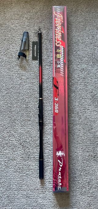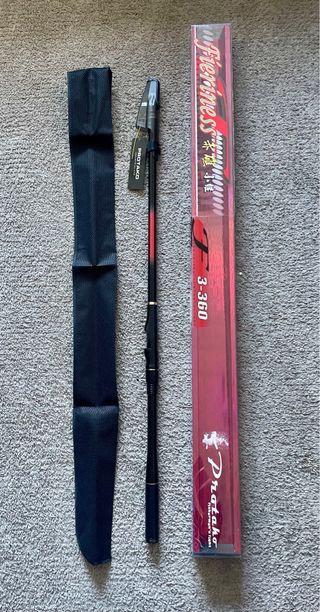Se vende caña de pescar Protako Fieriness 3-360. Completamente nueva, a estrenar. Funda rígida, funda de tela y protege anillas. La caña mas buscada para la pesca del calamar y del chipirón. - Modelo: Fieriness - Longitud: 3.60 metros - Marca: Protako